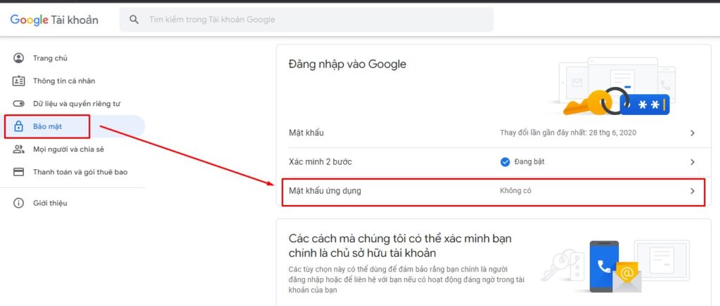 Bước 11: Quay lại mục Bảo mật như ở bước 4, và chọn Mật khẩu ứng dụng