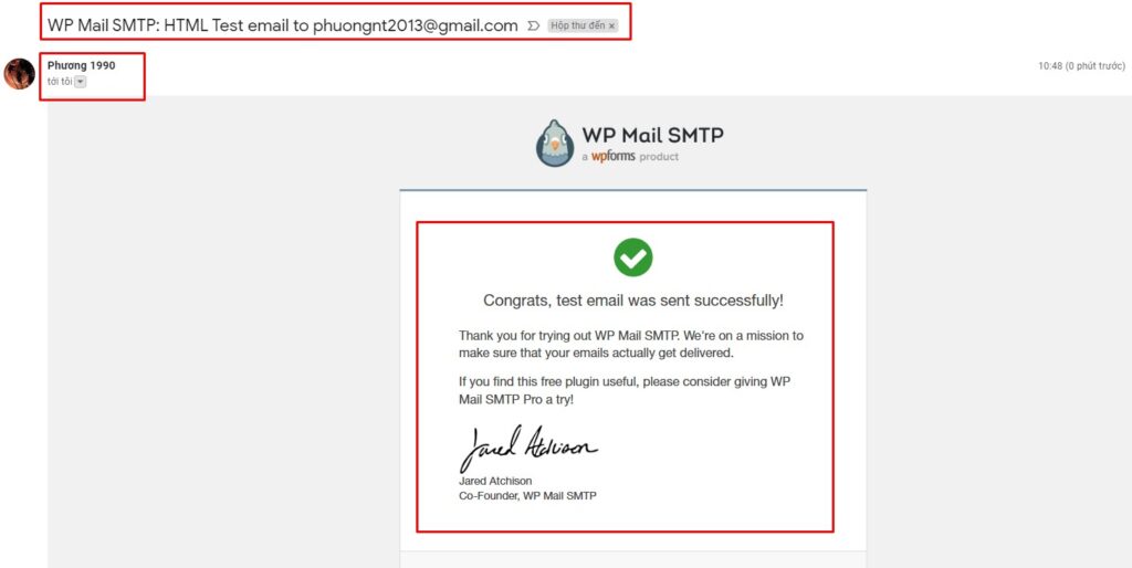 Và nếu bạn nhận được email tương tự như bên dưới là đã thành công.